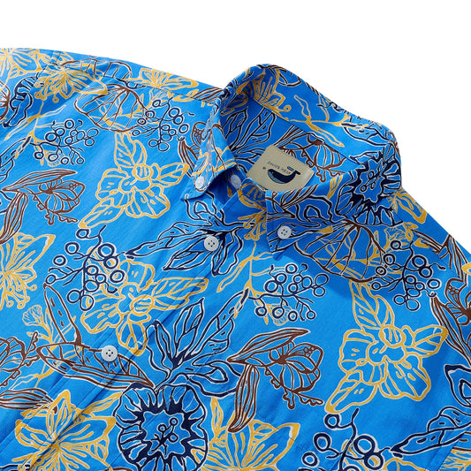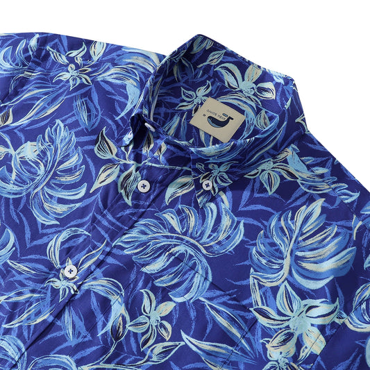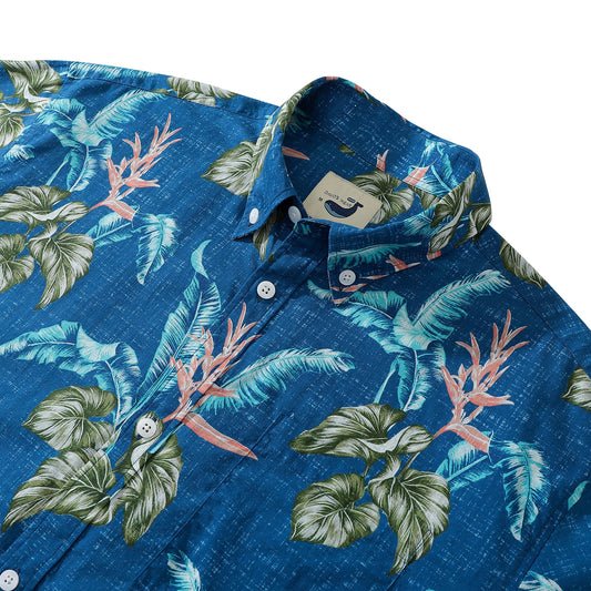 Men's Aloha Shirt Blue Tropical Floral Cotton Camp Collar Hawaiian Shirt