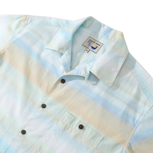 Men's Stripe Blurred Camp Shirt Hawaiian Coconut Button Short Sleeve Aloha Shirt
