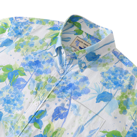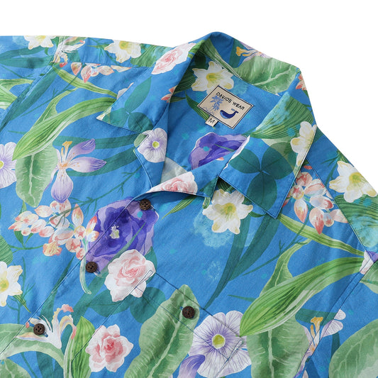 Hawaiian Shirts For Men Blue Lily Print Shirt Short Sleeve