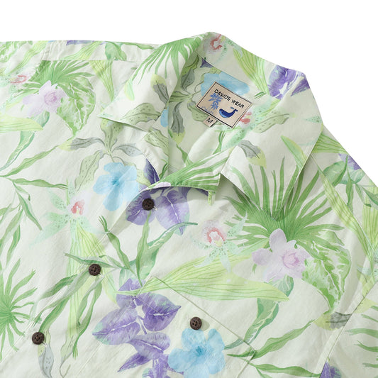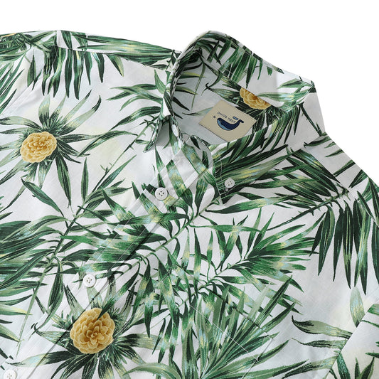Hawaiian Shirts For Men Tropical Green Floral Cotton Button Down Short Sleeve Aloha Shirt