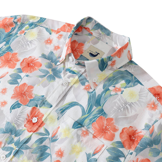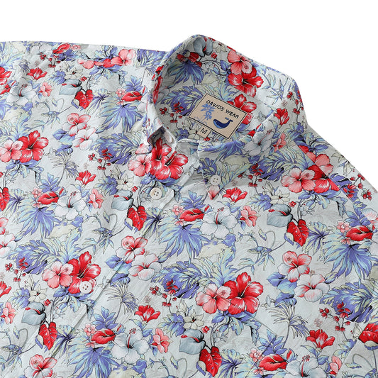 Men's Hawaiian Shirt Tropical Hibiscus Floral Cotton Aloha Shirt Button Down