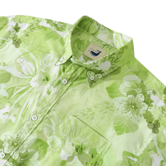 Men's Hawaiian Shirt Green Tropical Floral Cotton Aloha Shirt Camp Shirt