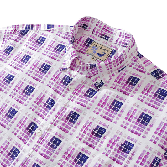 Men's Plaid Shirt Gradient Geometry Purple Print Cotton Hawaiian Shirt
