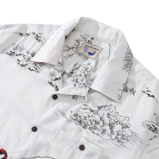 Men's Aloha Shirt Cotton Short Sleeve Button Down Paper-cut Art Print Hidden Pocket