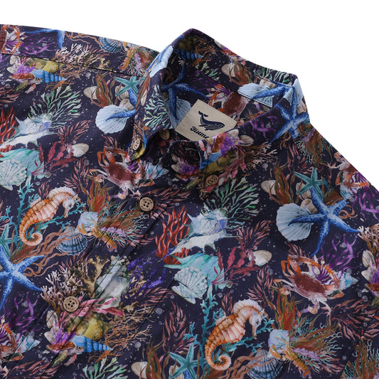 Men's Funny Hawaiian Shirt Ocean Print Cotton Button-down Short Sleeve Aloha Shirt