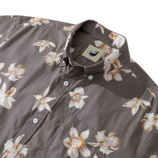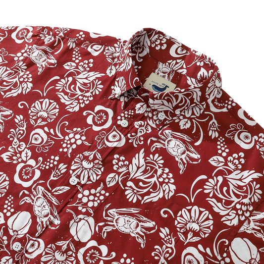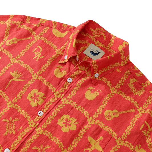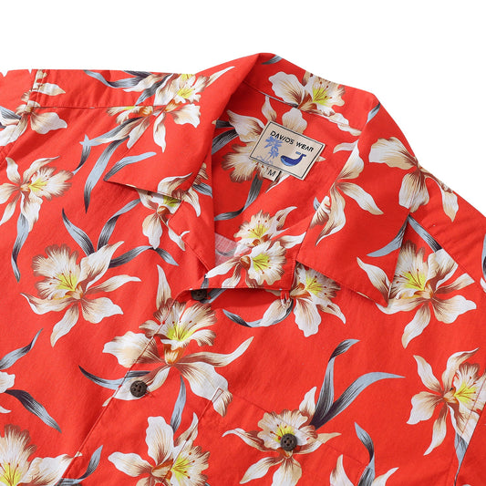 Hawaiian Shirts For Men Vintage Cotton Orchid print Shirt - Red