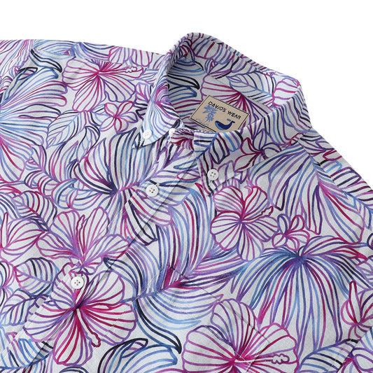 Men's Hawaiian Shirt Purple Tropical Floral Cotton Aloha Shirt Button Down