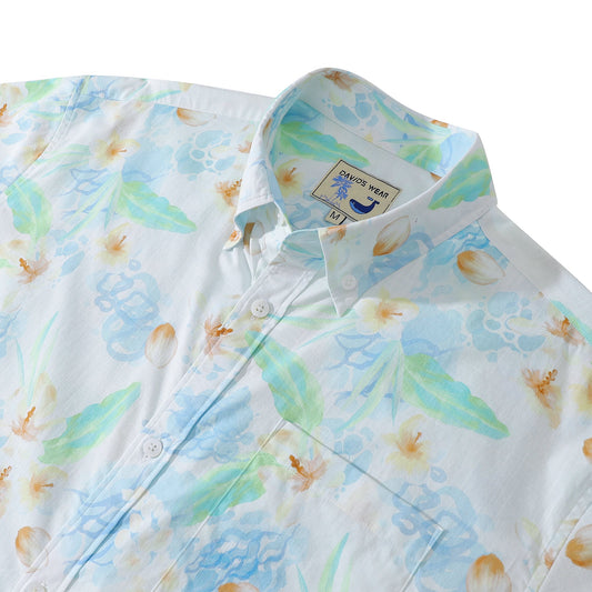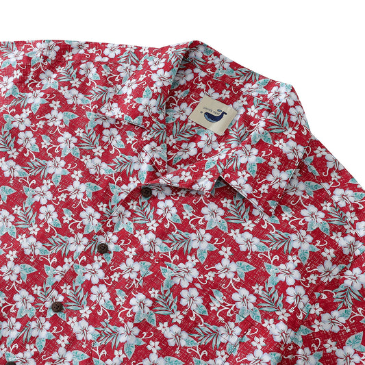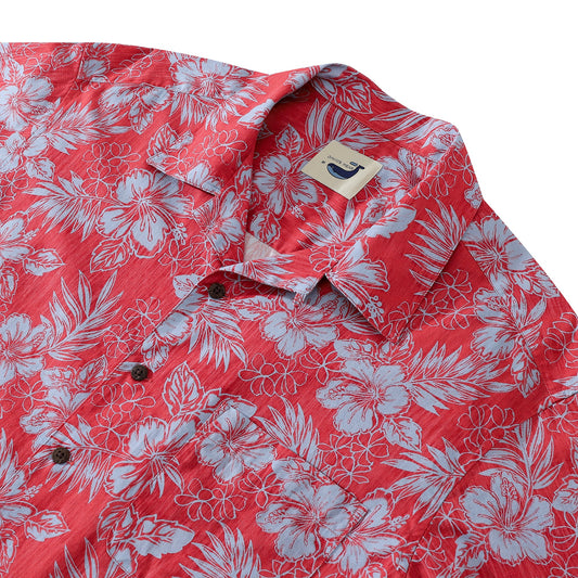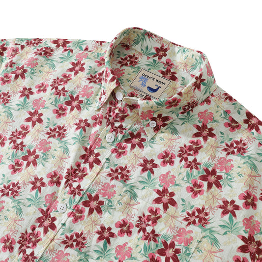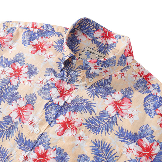 Hawaiian Shirts For Men Blooming hibiscus flower Print Shirt 100% Cotton