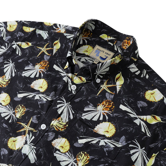 Hawaiian Shirts For Men Vintage Tropical Conch Button Down Cotton Aloha Shirt