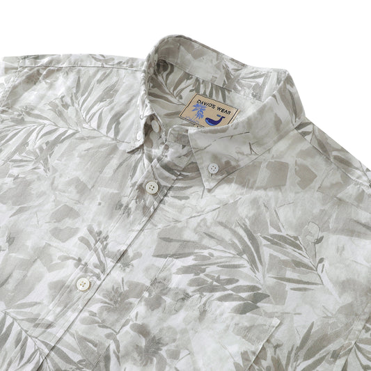 Hawaiian Shirt For Men Gray Tropical Plants Print Short Sleeve 1920s Vintage Shirts