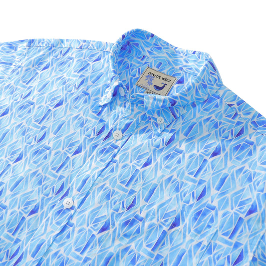 Men's Short Sleeve Shirt Men Hawaii Blue Geometry Print Cotton Button Down