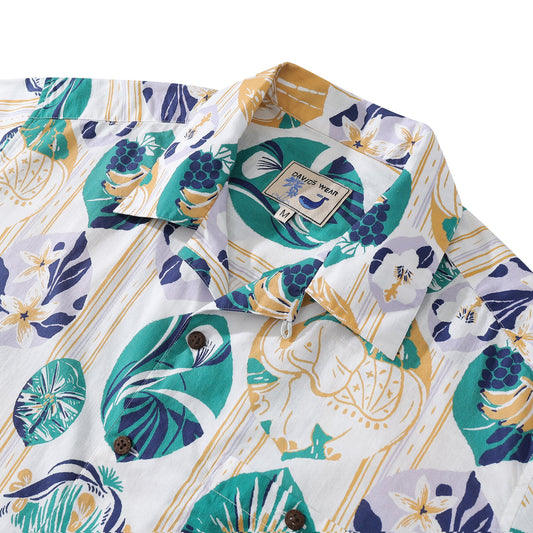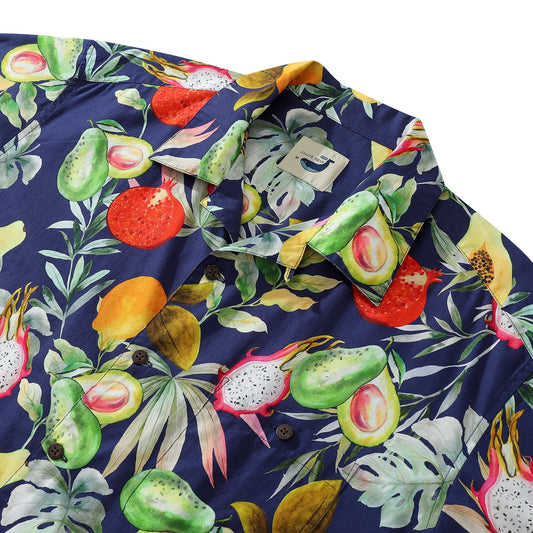Avocado Papaya Mango Tropical Fruit Men's Hawaiian Shirt 100% Cotton