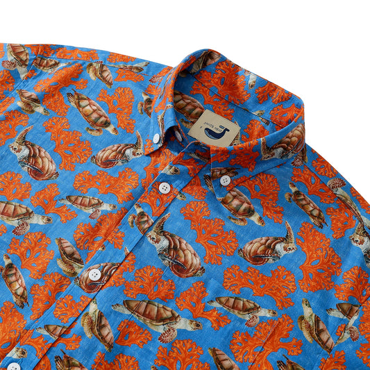 Sea Turtles And Coral Light Blue Men's Button-down Shirt 100% Cotton