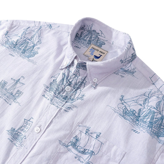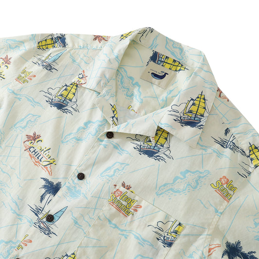 Sailing Adventure Men's 100% Cotton Camp Shirts Coconut Button