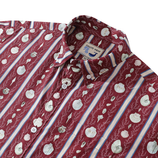 Hawaiian Shirt For Men Red Vintage Cotton Shirt Vertical Striped Shell Short Sleeve