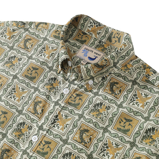 Classic Nine-Square Division Men's Button-down Shirt Tropical Life