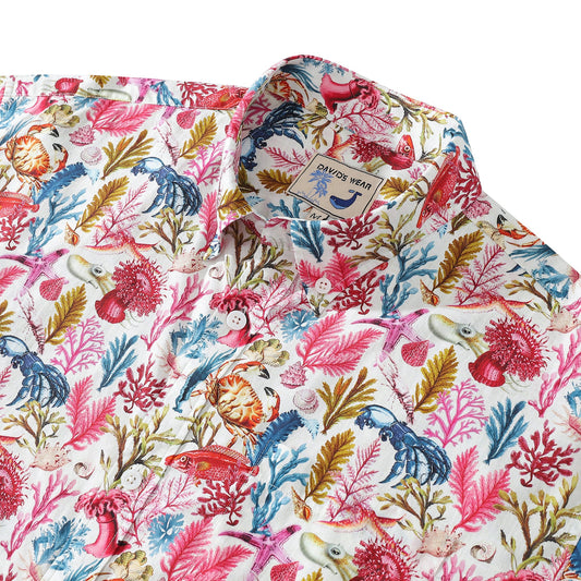 Hawaiian Shirt For Men Marine Life Print Short Sleeve Cotton Button Down - Rose Pink