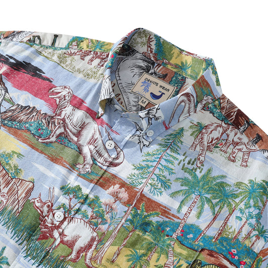 Hawaiian Shirts For Men Vintage Cretaceous Dinosaur Print Shirt