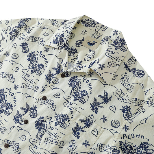 Men's Aloha Shirt Cotton Short Sleeve Classic Pattern Button Down Hidden Pocket