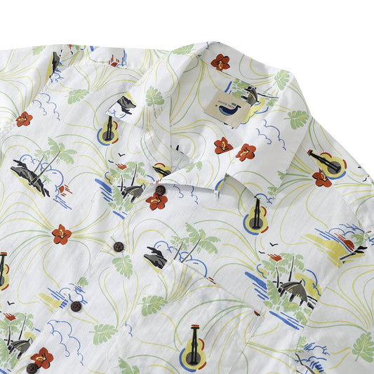 Ukulele Hibiscus Island Sunrise Men's 100% Cotton Camp Shirts