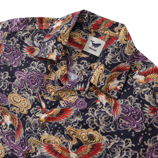 Hawaiian Shirt For Men Lonely Clouds and Free Cranes Print Shirt Camp Collar 100% Cotton