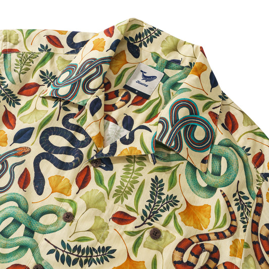 Mens 100% Cotton Hawaiian Shirt Short Sleeve Camp Collar Aloha Shirt Snake Shirt Sublime Snakes By Rosie Dore