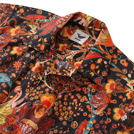 Hawaiian Shirt For Men Blazing Tiger Shirt Camp Collar 100% Cotton
