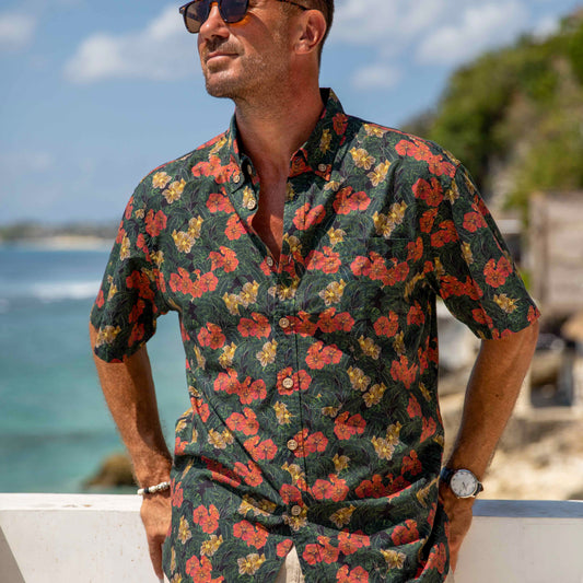 Tropical Hawaiian Shirt For Men Button-down Shirt Short Sleeve 100% Cotton Shirt