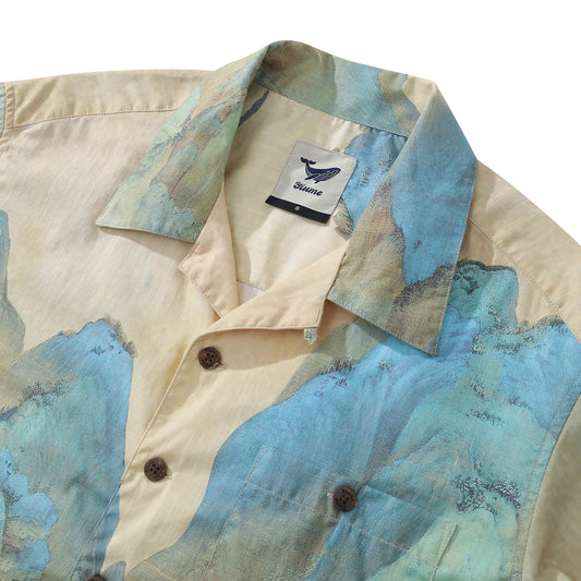 Hawaiian Art-Inspired Landscape Painting Shirt 100% Cotton Men's Aloha Hawaiian Long Sleeve Button-down Shirt