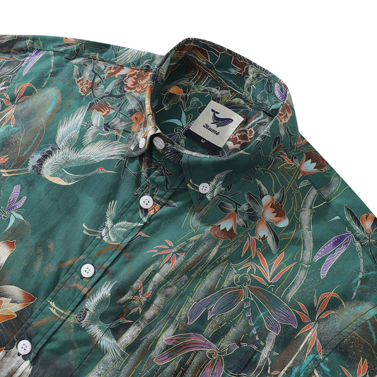 Hawaiian Shirt For Men Crane Elegance Shirt Button-down Short Sleeve 100% Cotton Shirt