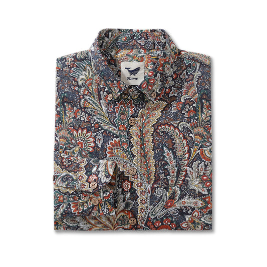 Men's Hawaiian Shirt Scroll Pattern Print Cotton Button-down Long Sleeve Aloha Shirt