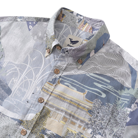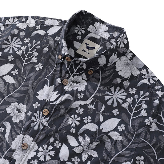 Men's Hawaiian Shirt Silver Antiquity Cotton Button-down Short Sleeve Aloha Shirt