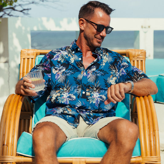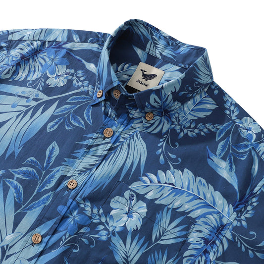 Deep Blue Hawaiian Shirt For Men Button-down Ocean Shirt Short Sleeve 100% Cotton Shirt