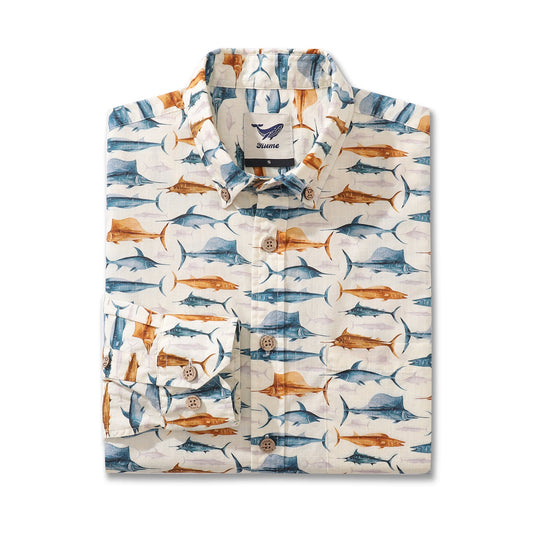 Men's Hawaiian Shirt Swordfish By Andersson Grace Cotton Button-down Long Sleeve Aloha Shirt