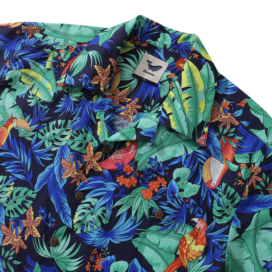 Hawaiian Shirt For Men Garden Parrot Shirt Camp Collar 100% Cotton