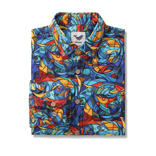 Long Sleeve Hawaiian Shirt For Men Cubism Cotton Button-down Aloha Shirt