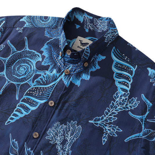 Blue Hawaiian Shirt For Men Short Sleeve Ocean Sonata Shirt Button-down Cotton Shirt