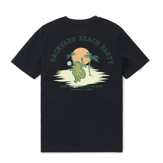 Hawaiian Tee For Men Backyard Beach Party By Loindaflow Tee Crew Neck 100% Cotton - BLACK