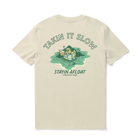 Hawaiian Tee For Men Takin It Slow By Loindaflow Tee Crew Neck 100% Cotton - BEIGE