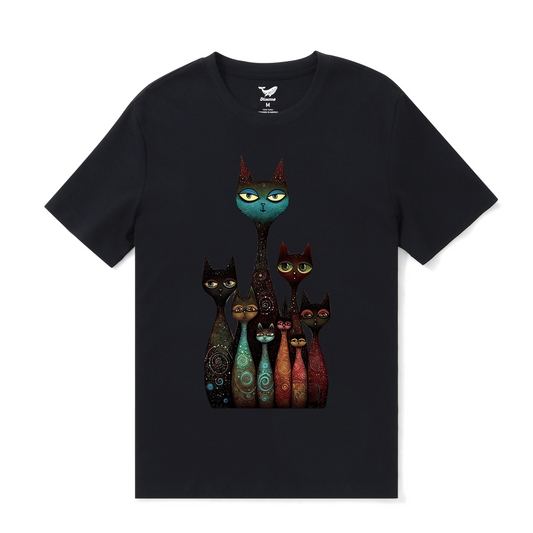 Hawaiian Tee For Men Cats In Love Van Gogh Tee Crew Neck 100% Cotton - BLACK