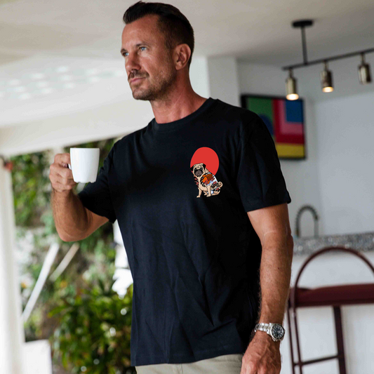 Hawaiian Tee For Men Yakuza Pug Tee Crew Neck 100% Cotton - BLACK