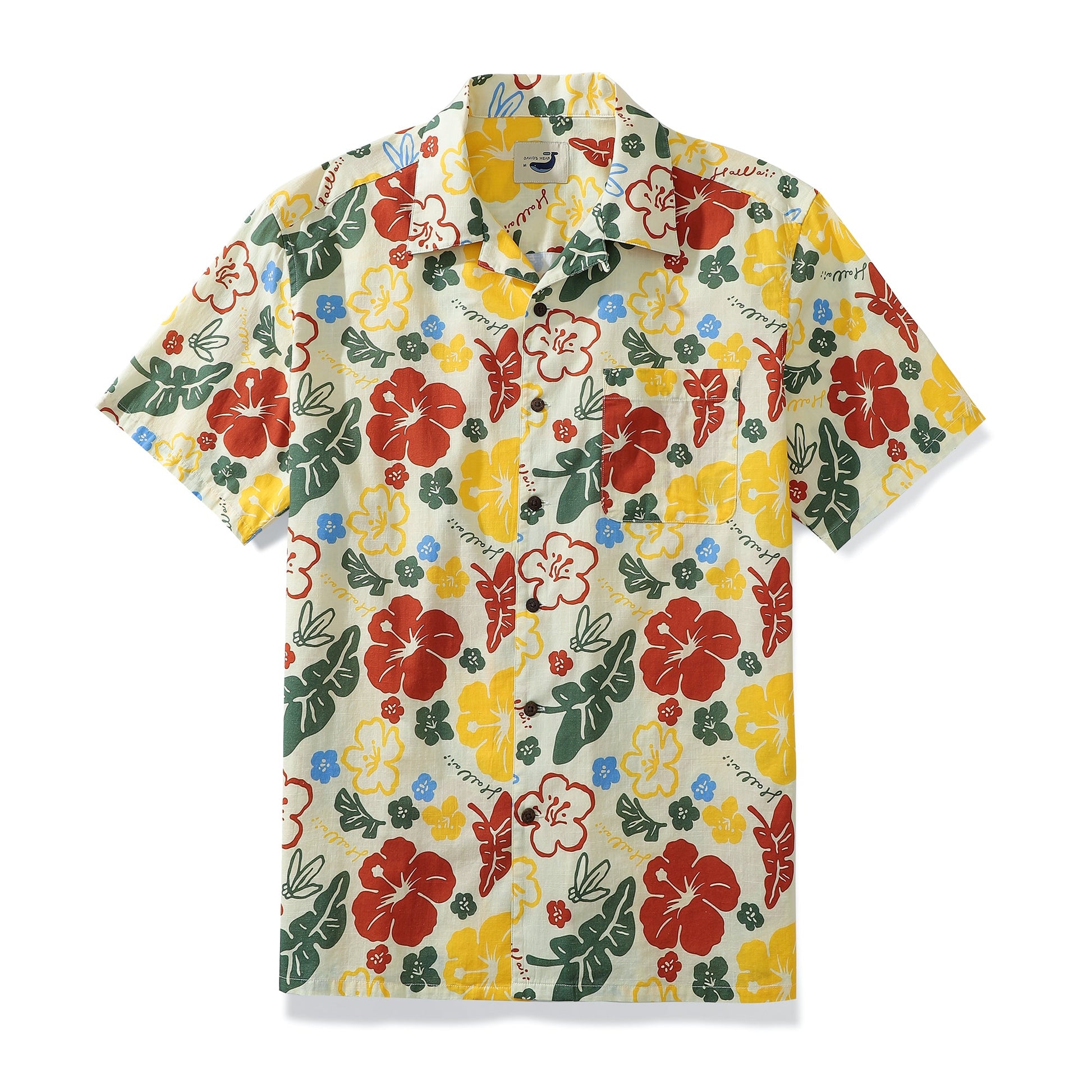 Colorful flowers, playful butterflies, this combination of contrasting colors is like a childhood candy wrapper. And all make this a fun shirt for any age, as long as your childlike innocence is still there. This colorful and vibrant Hawaiian shirt is one of our most popular designs.