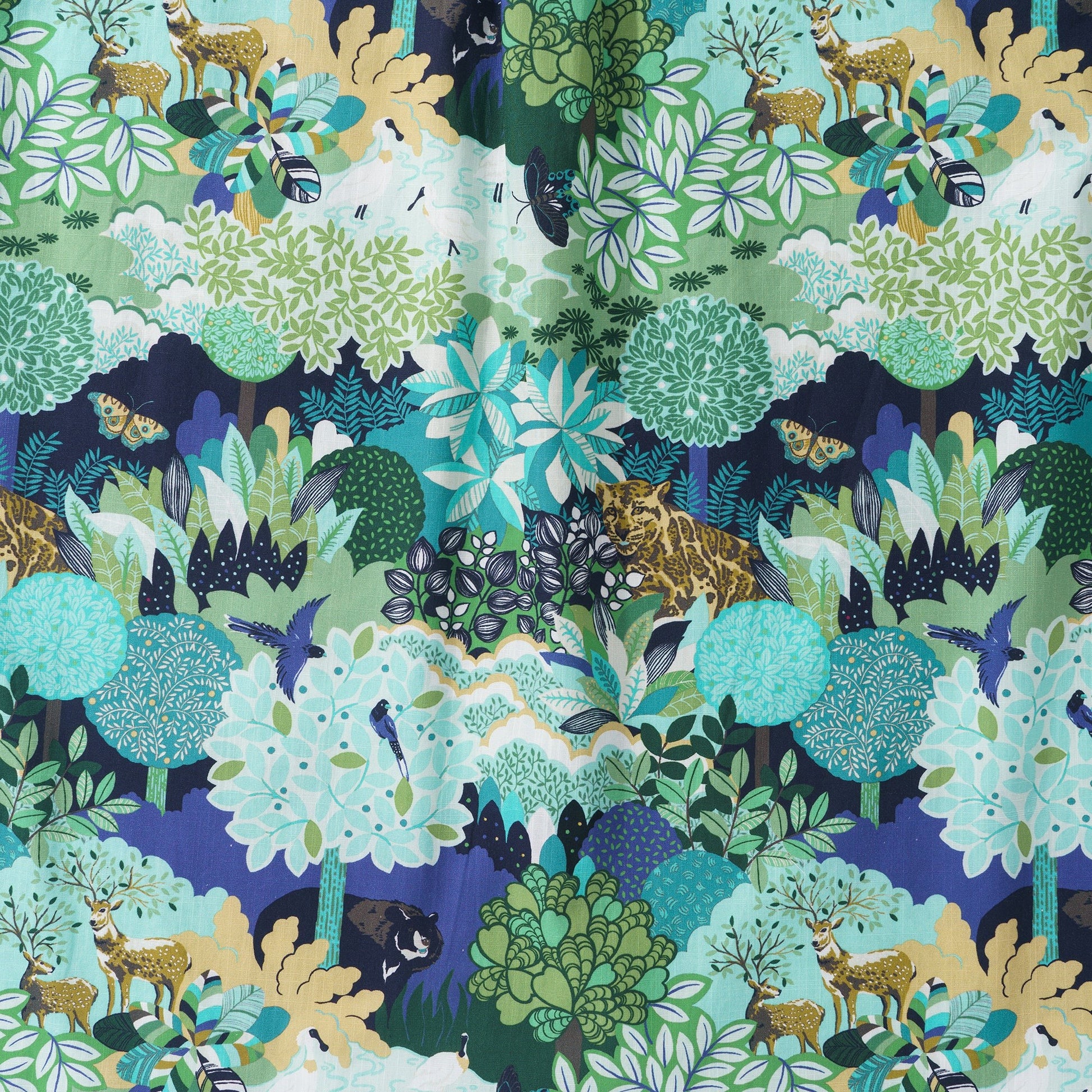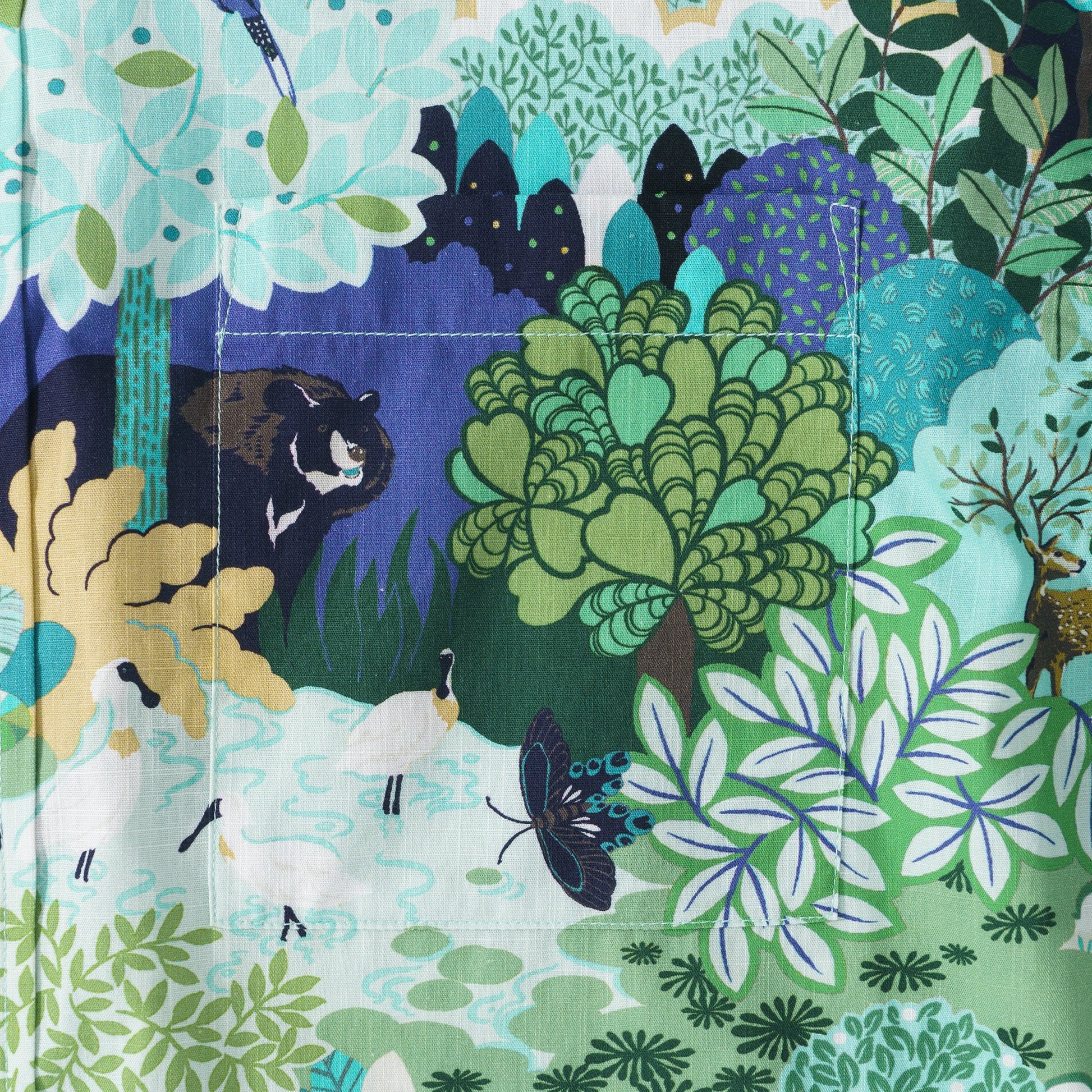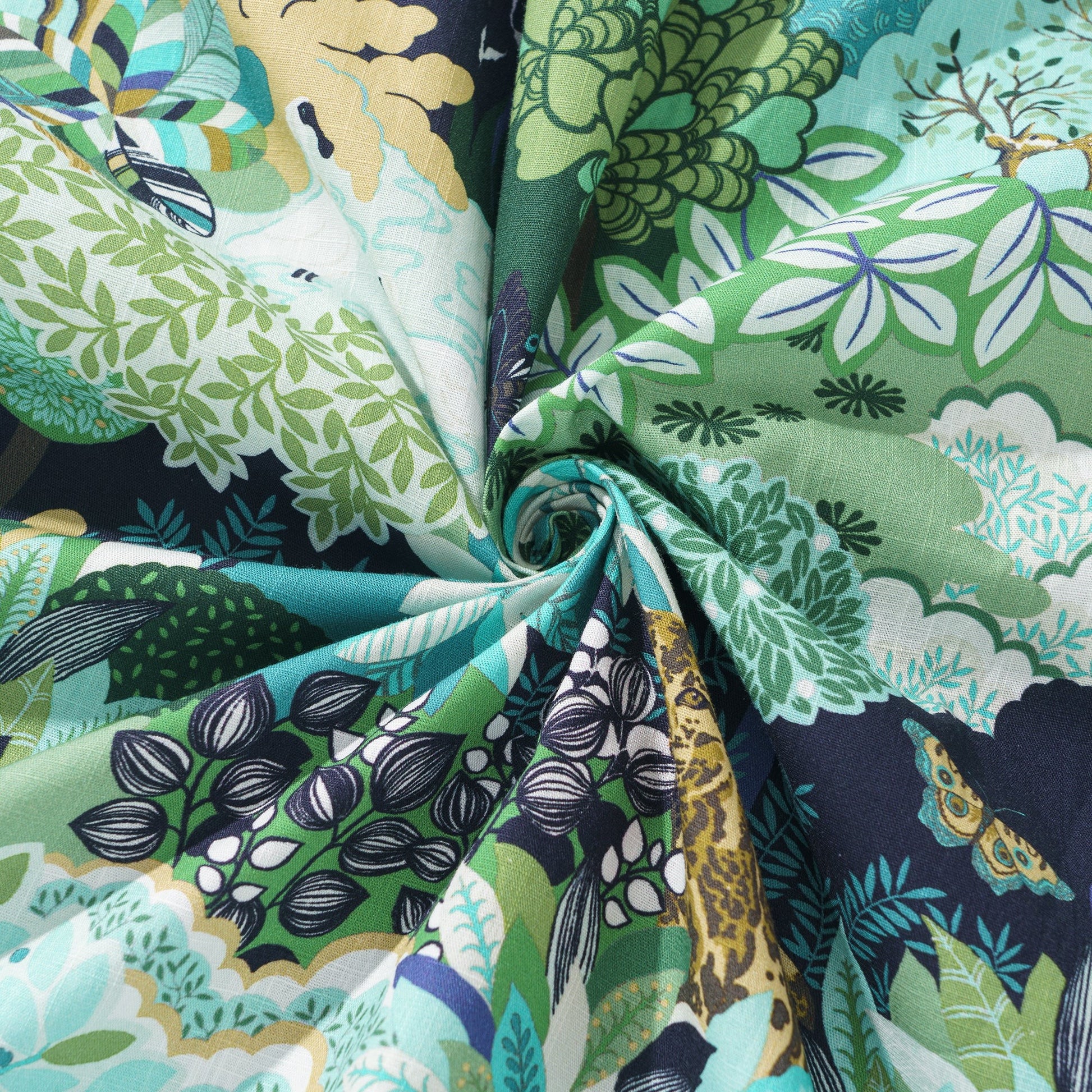 Renowned artist and textile designer Chris Chun brings to life the beauty of Taiwan's endangered species in his 'Formosan Wonderland' collection. Drawing inspiration from the island's rich natural environment and commitment to wildlife conservation, this captivating print reveals six hidden animals amidst a vibrant tapestry of lush trees and exotic plants.