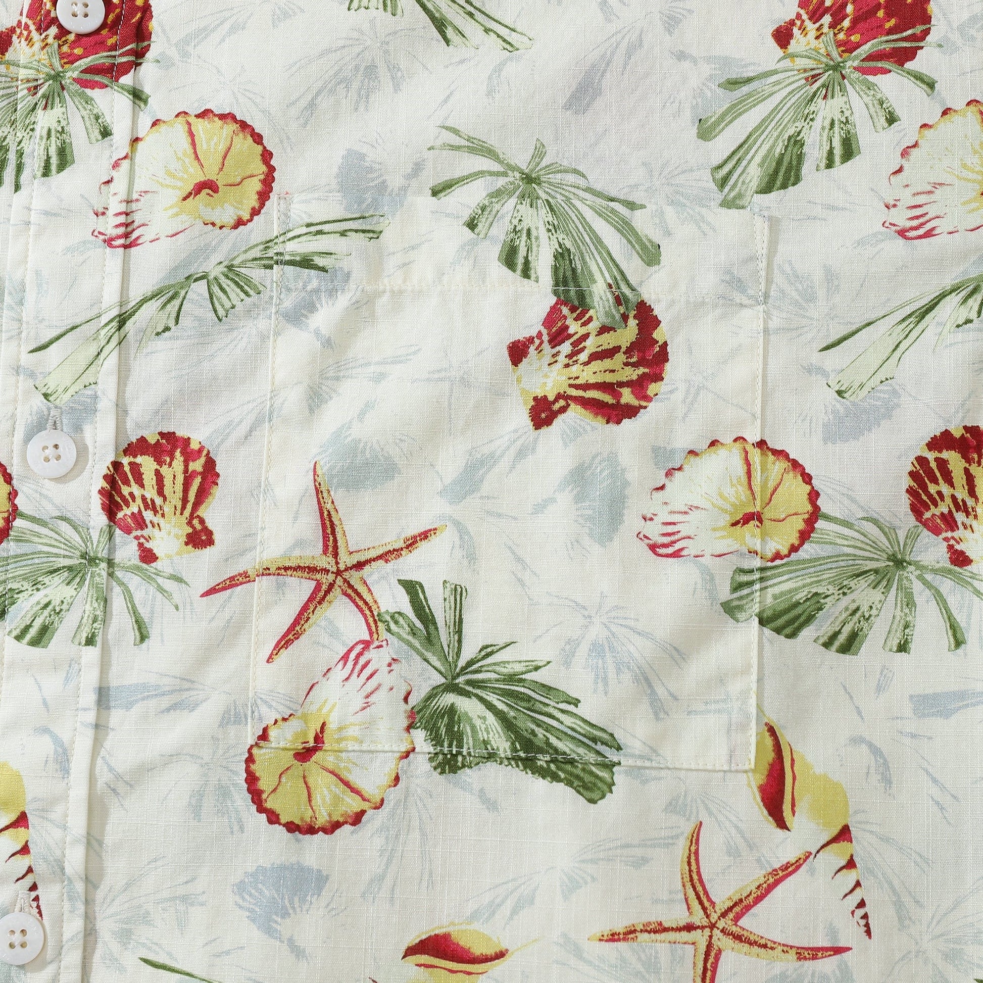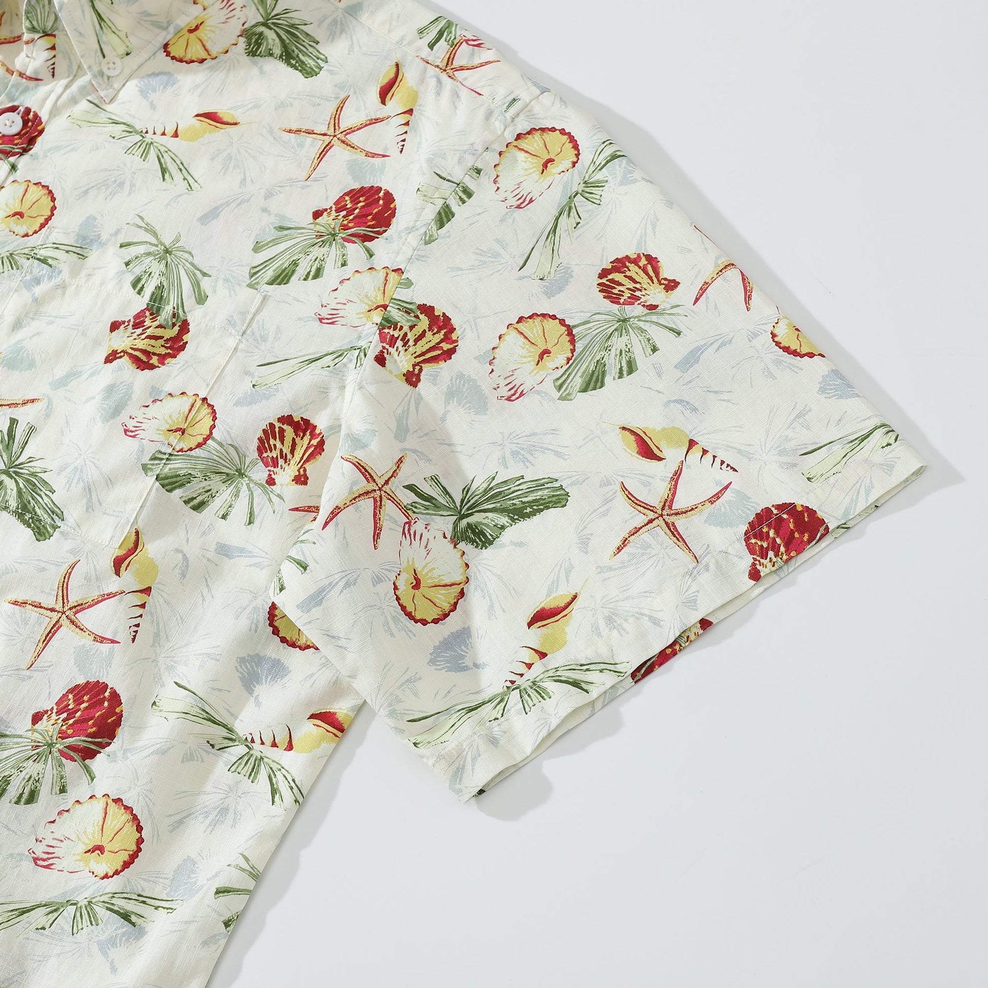 Yiume Outlets Hawaiian Men's Shirt Vintage Palm Leaf Shell Silhouette Print 100% Cotton Short Sleeve Shirt