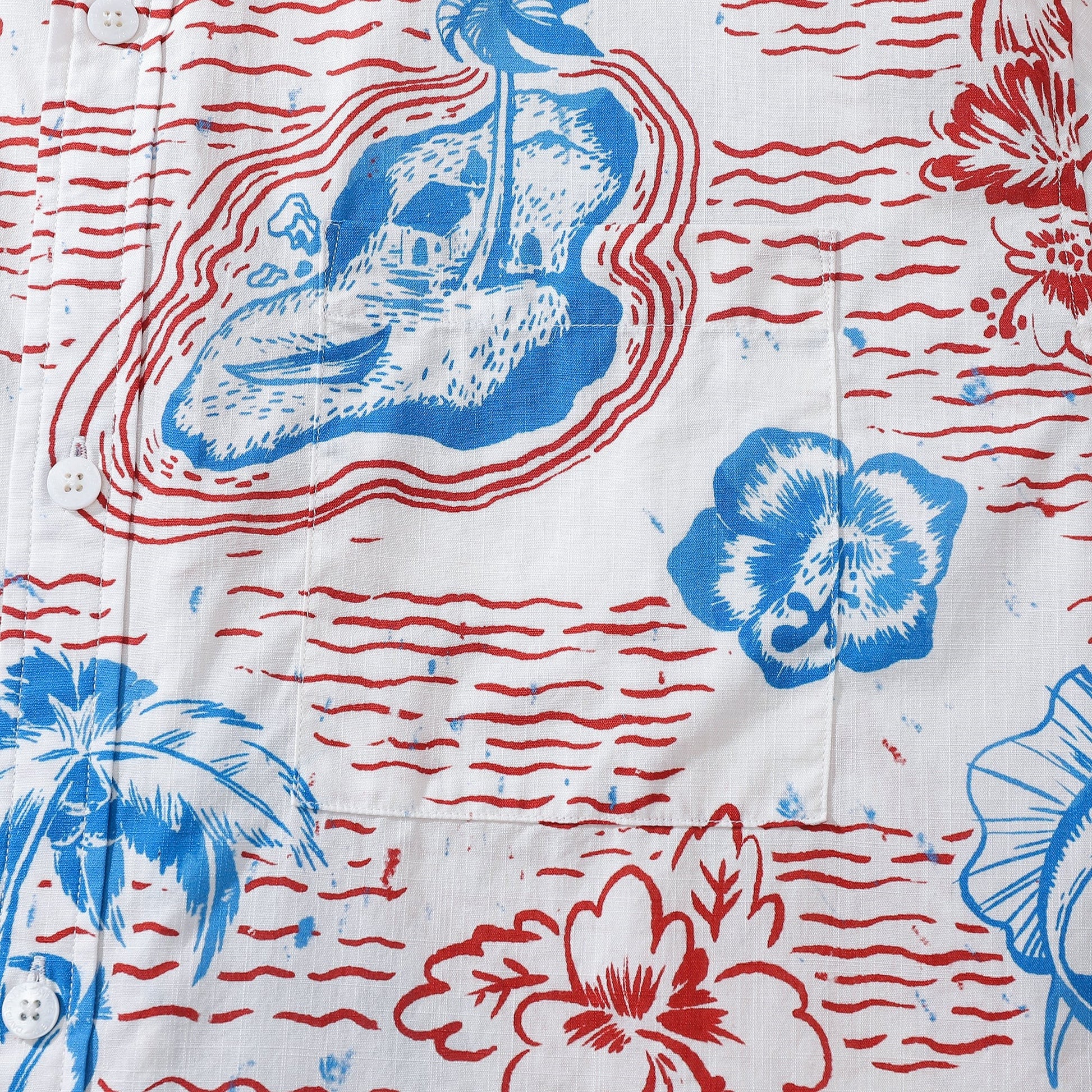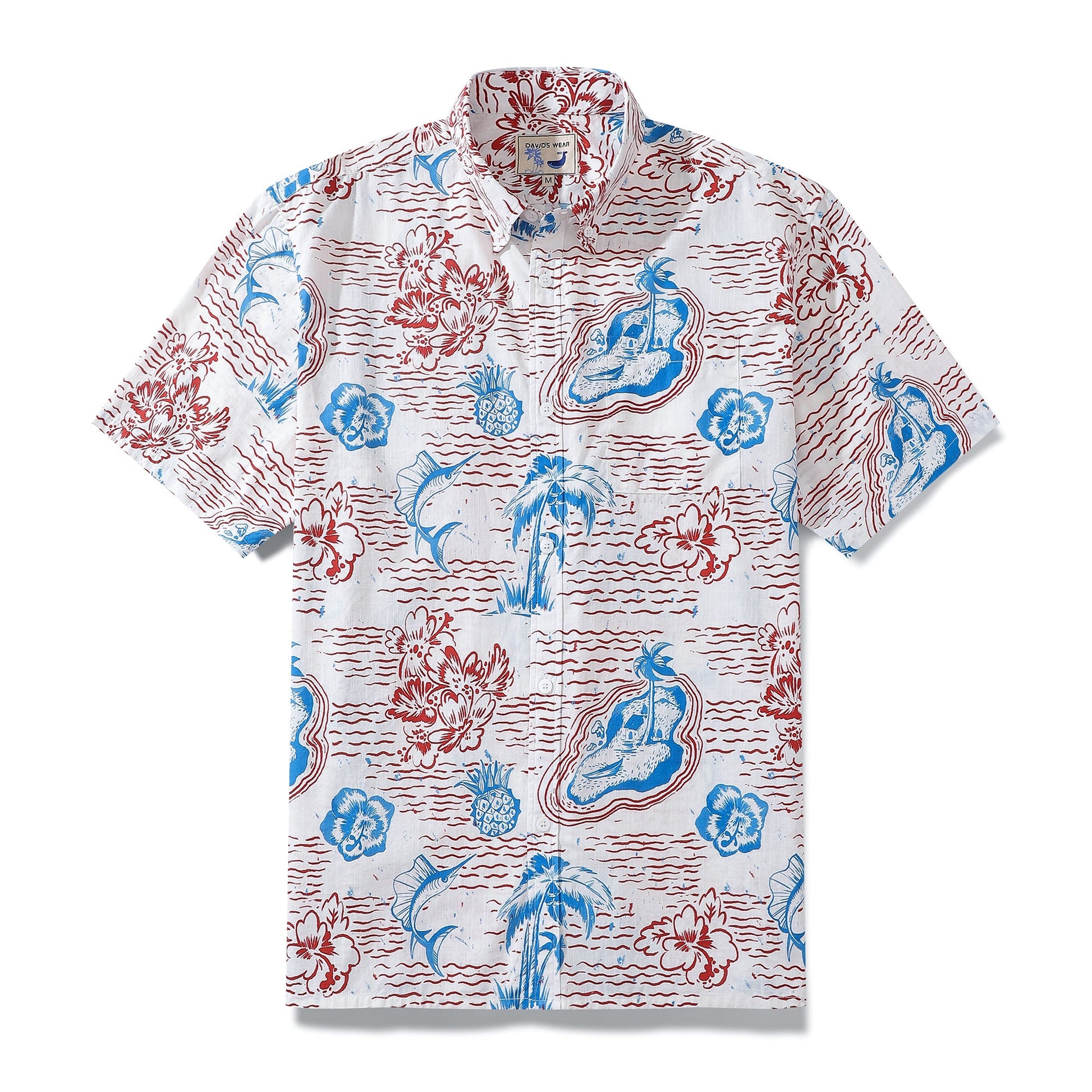 Yiume Outlets Hawaiian Men's Shirt with Tuna and Tropical Scenery Print, Made of 100% Cotton