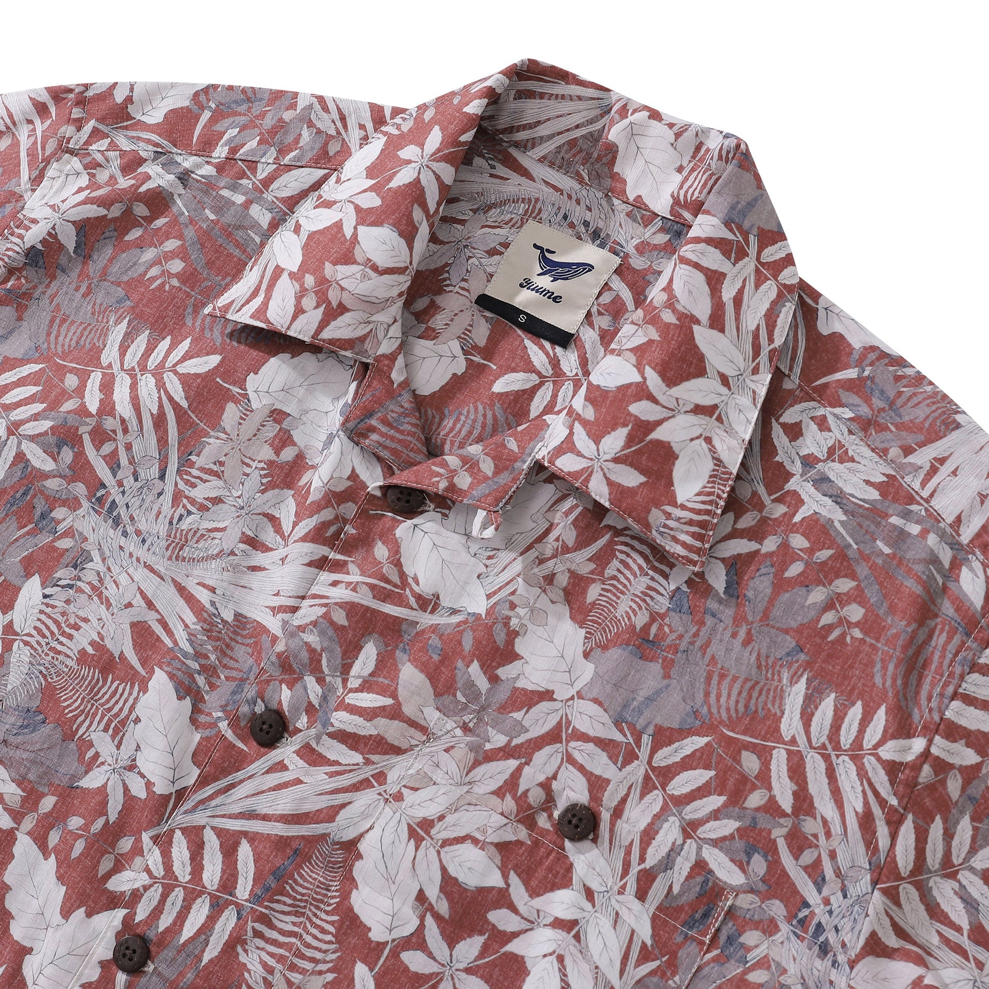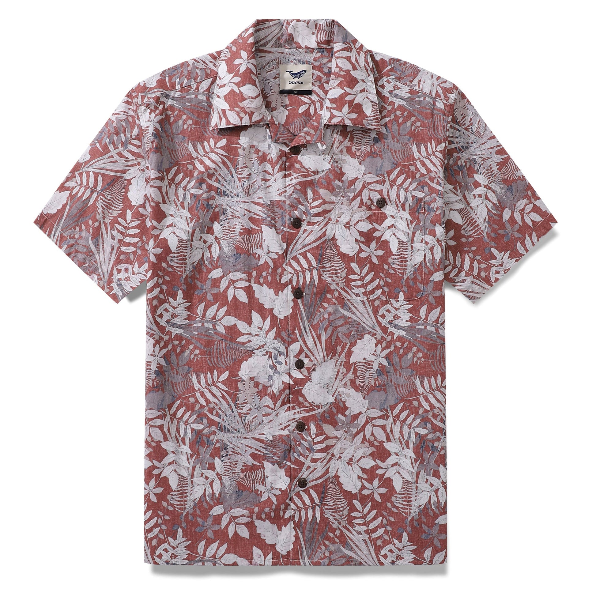Yiume Outlets 100% Cotton Hawaiian Shirt For Men Crimson Foliage Fantasia Print Shirt Camp Collar