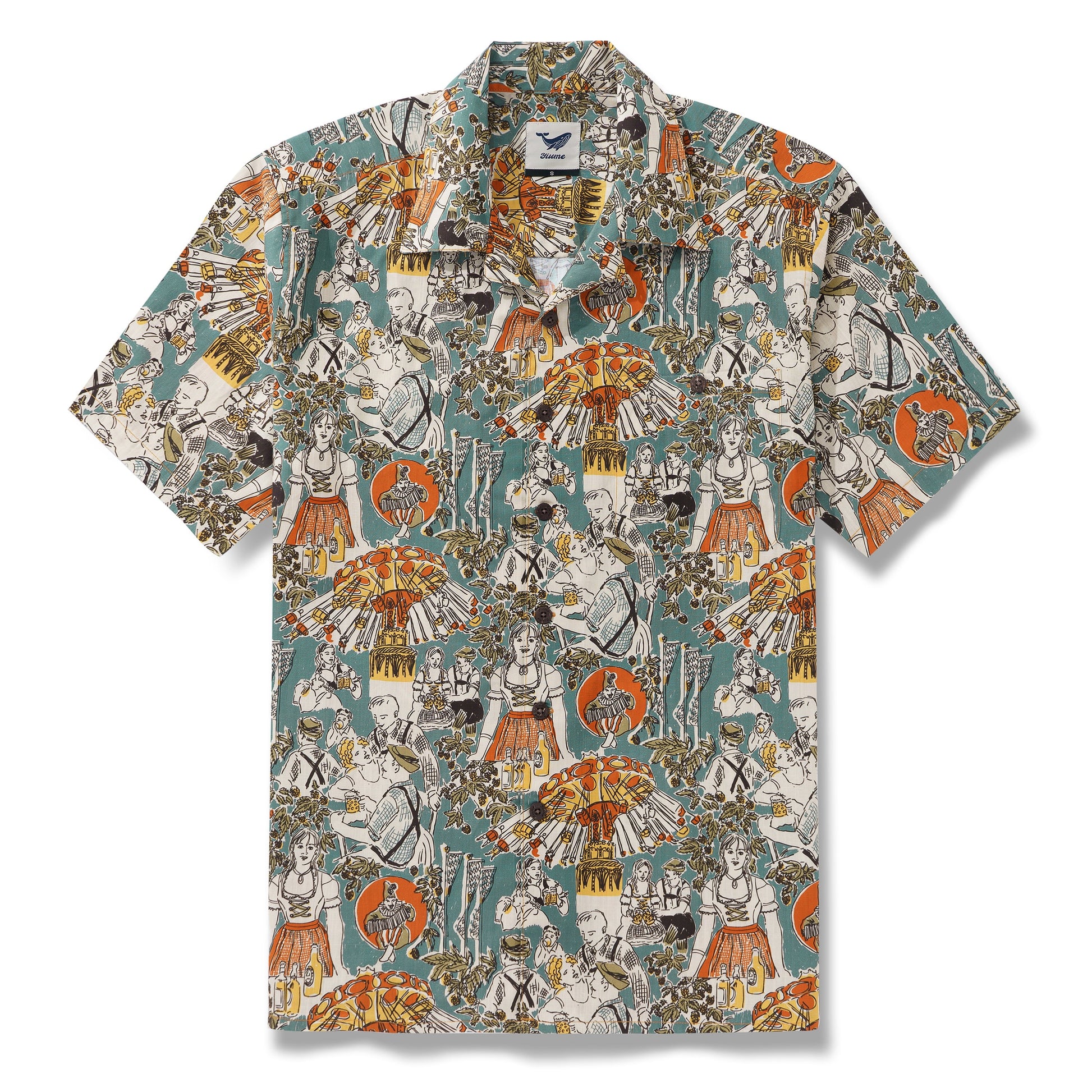 Yiume Outlets Hawaiian Shirt For Men Oktoberfest By Andrea Leonelli Short Sleeve Shirt Camp Collar 100% Cotton Shirt