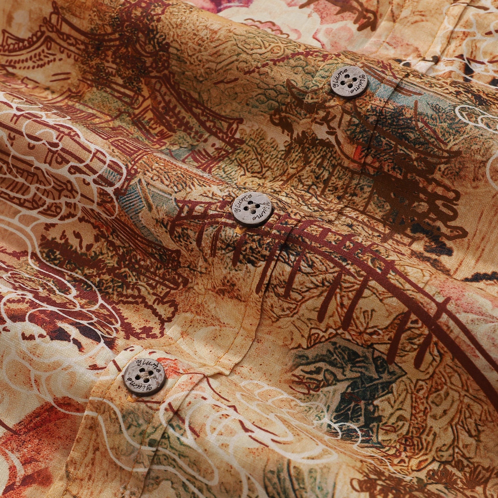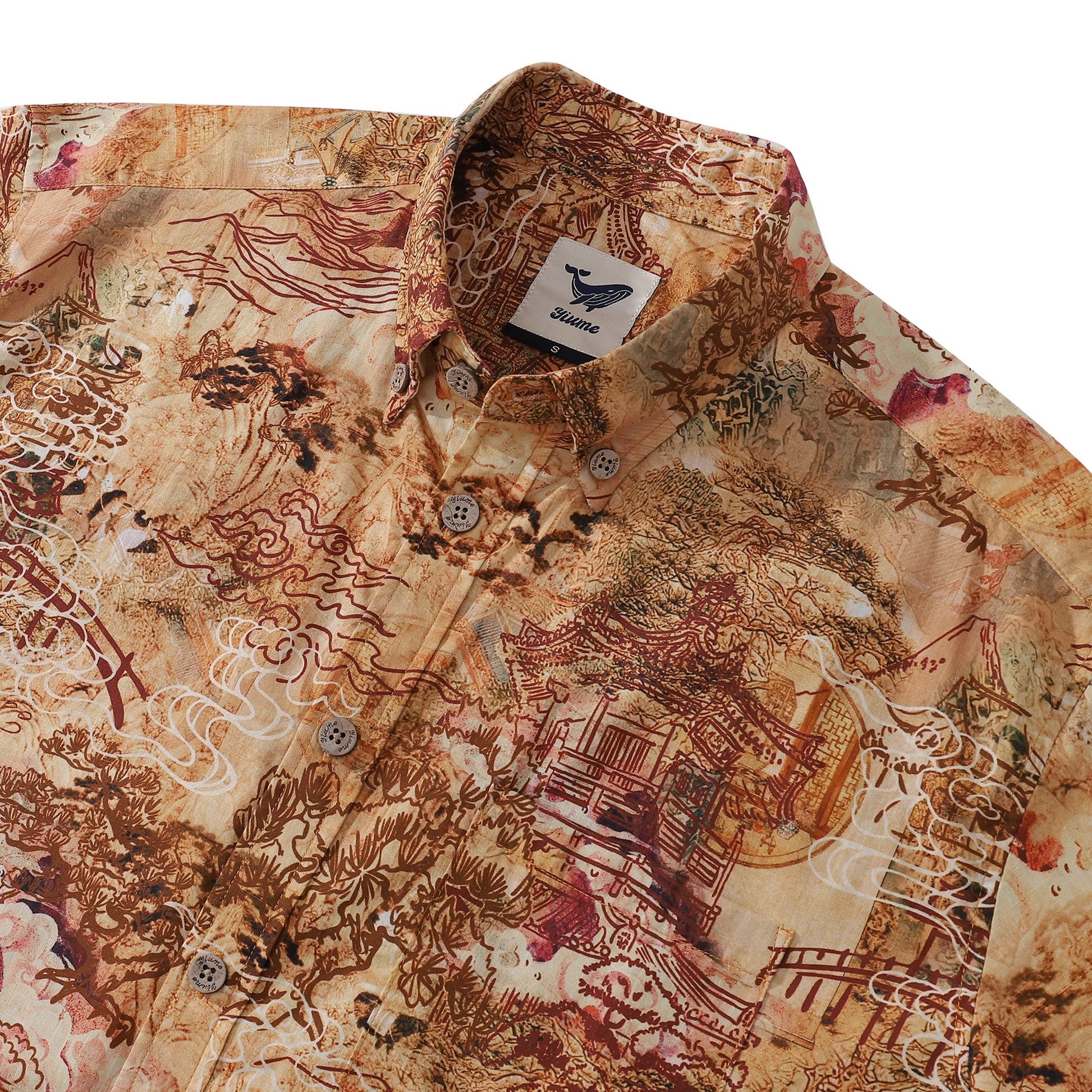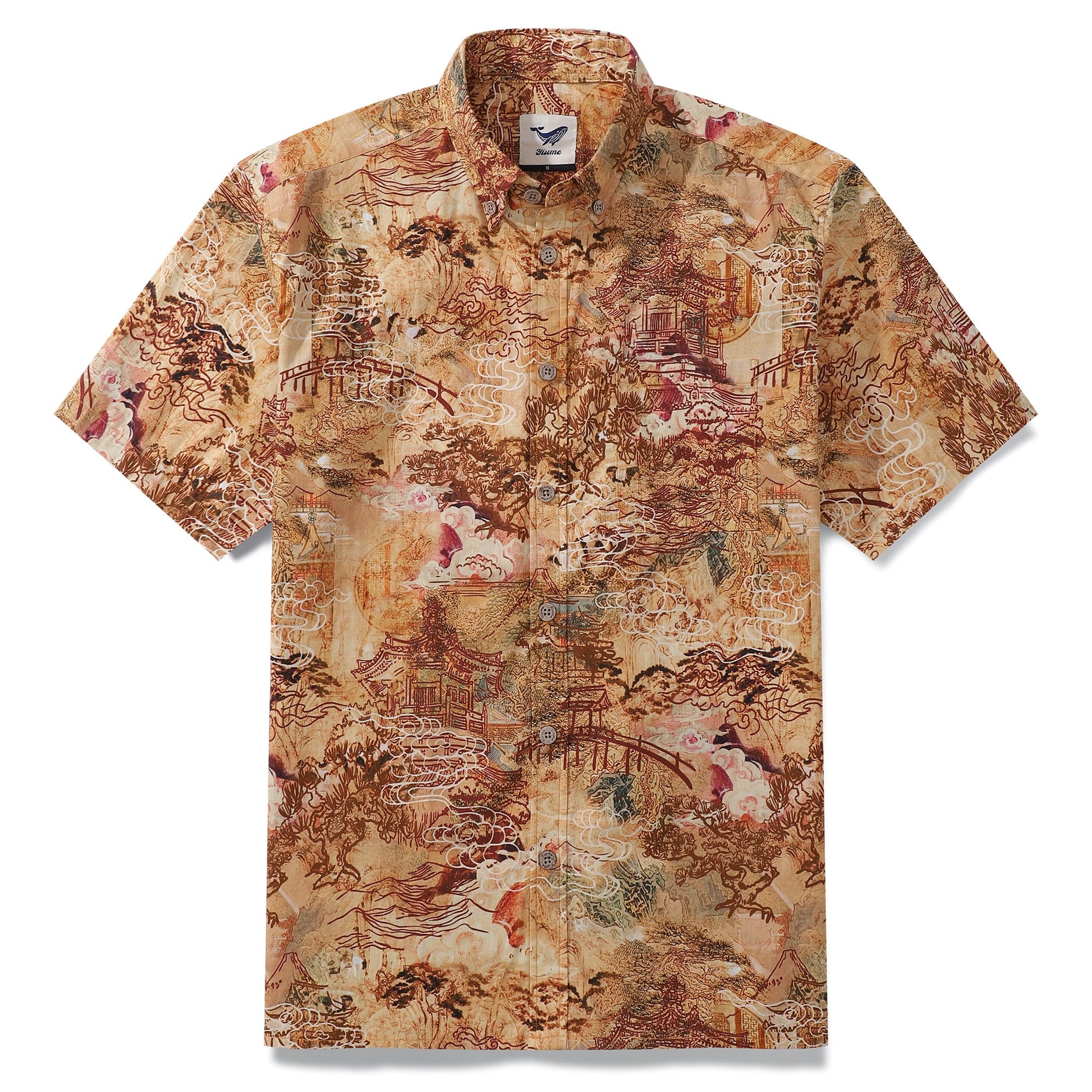 Yiume Outlets Hawaiian Shirt For Men Oriental Charm Button-down Shirt Short Sleeve 100% Cotton Shirt