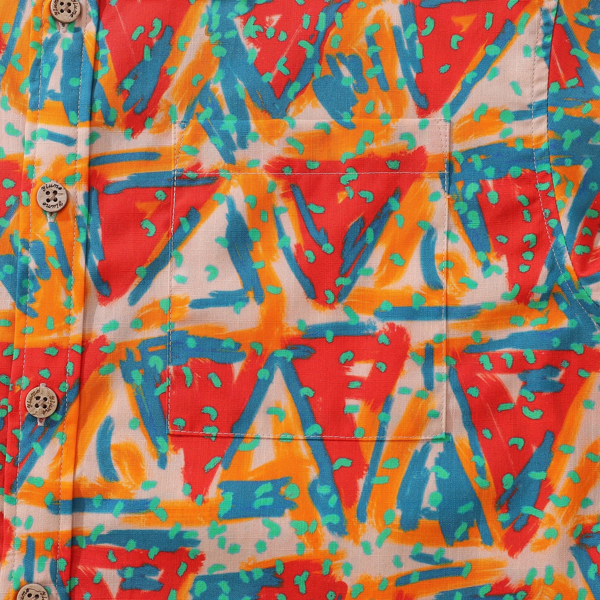 Yiume Outlets Hawaiian Shirt For Men Rainbow Geometry Button-down Shirt Short Sleeve 100% Cotton Shirt