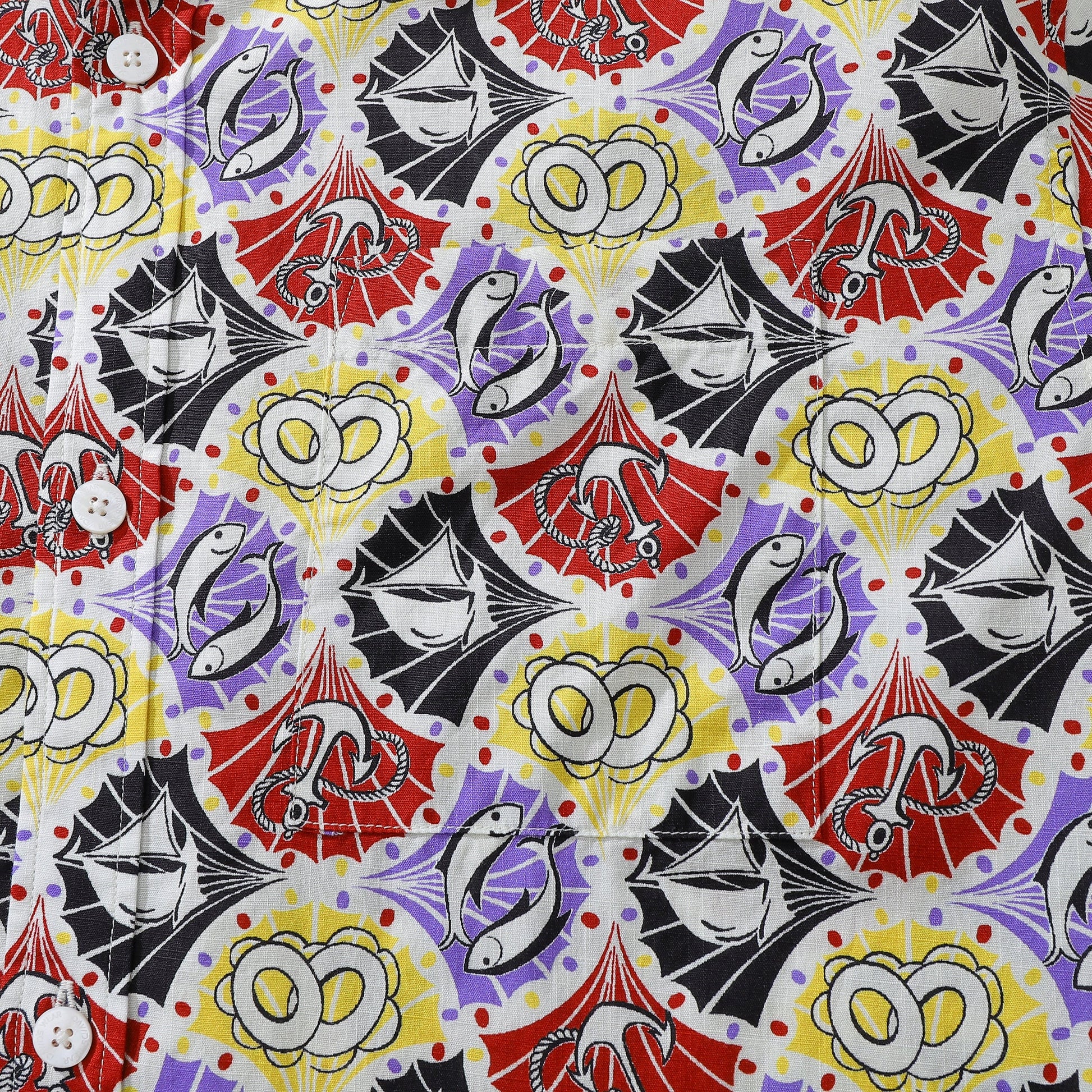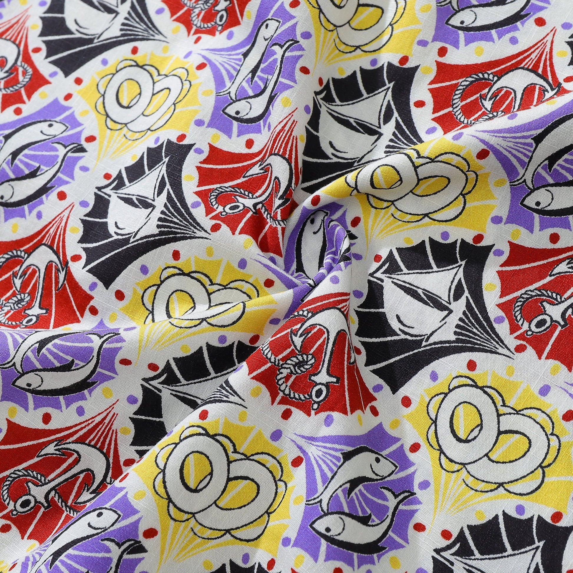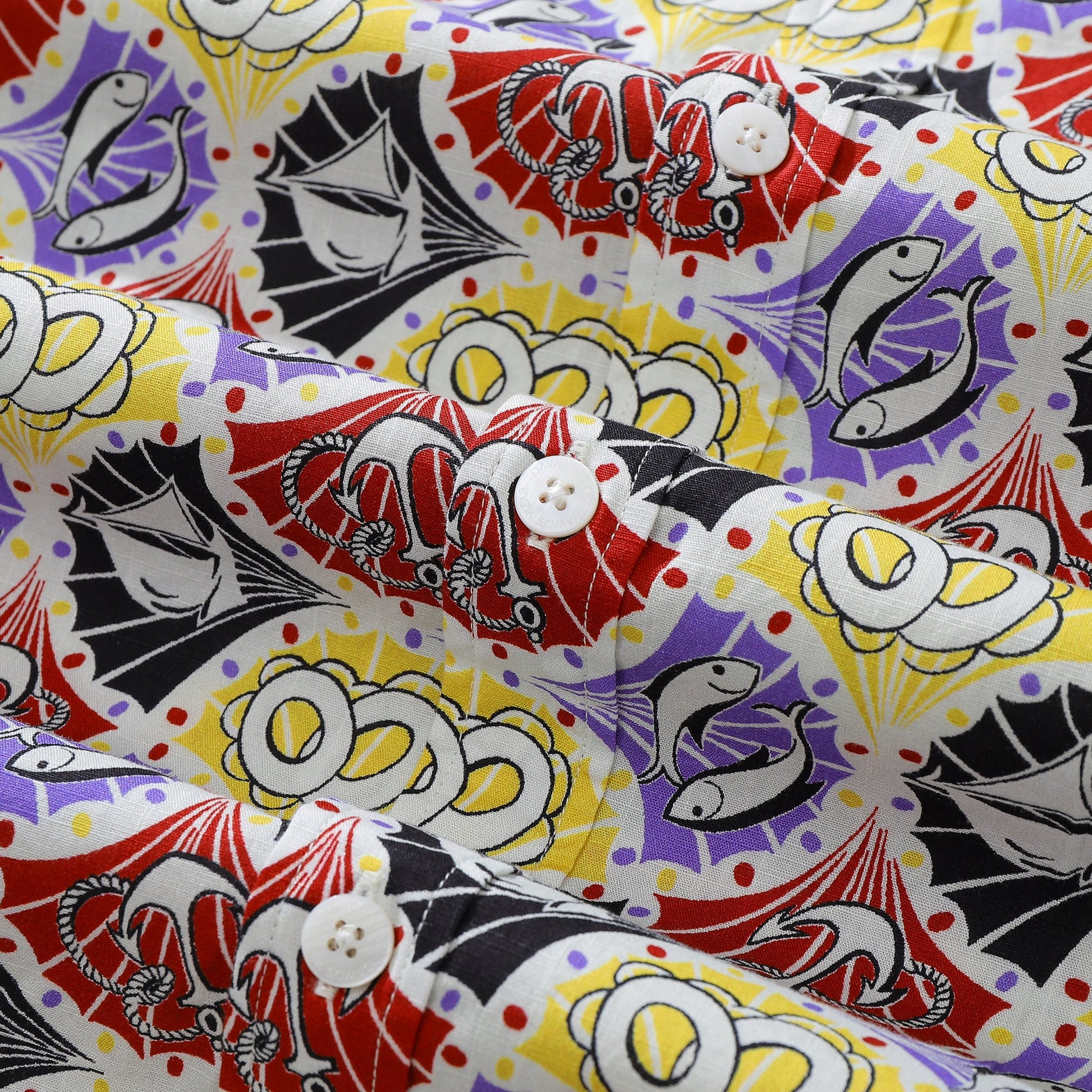 Yiume Outlets 1970s Vintage Hawaiian Shirt For Men Vintage Old Navy Fish And Anchor Print Cotton Shirt